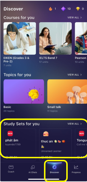 - View study sets created by other ELSA learners.