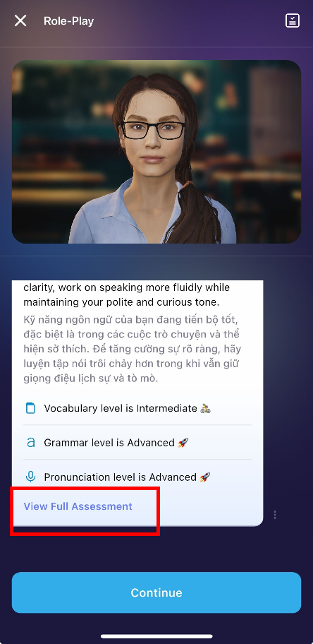 Make sure to tap "View Full Assessment" button at the end of the conversation.