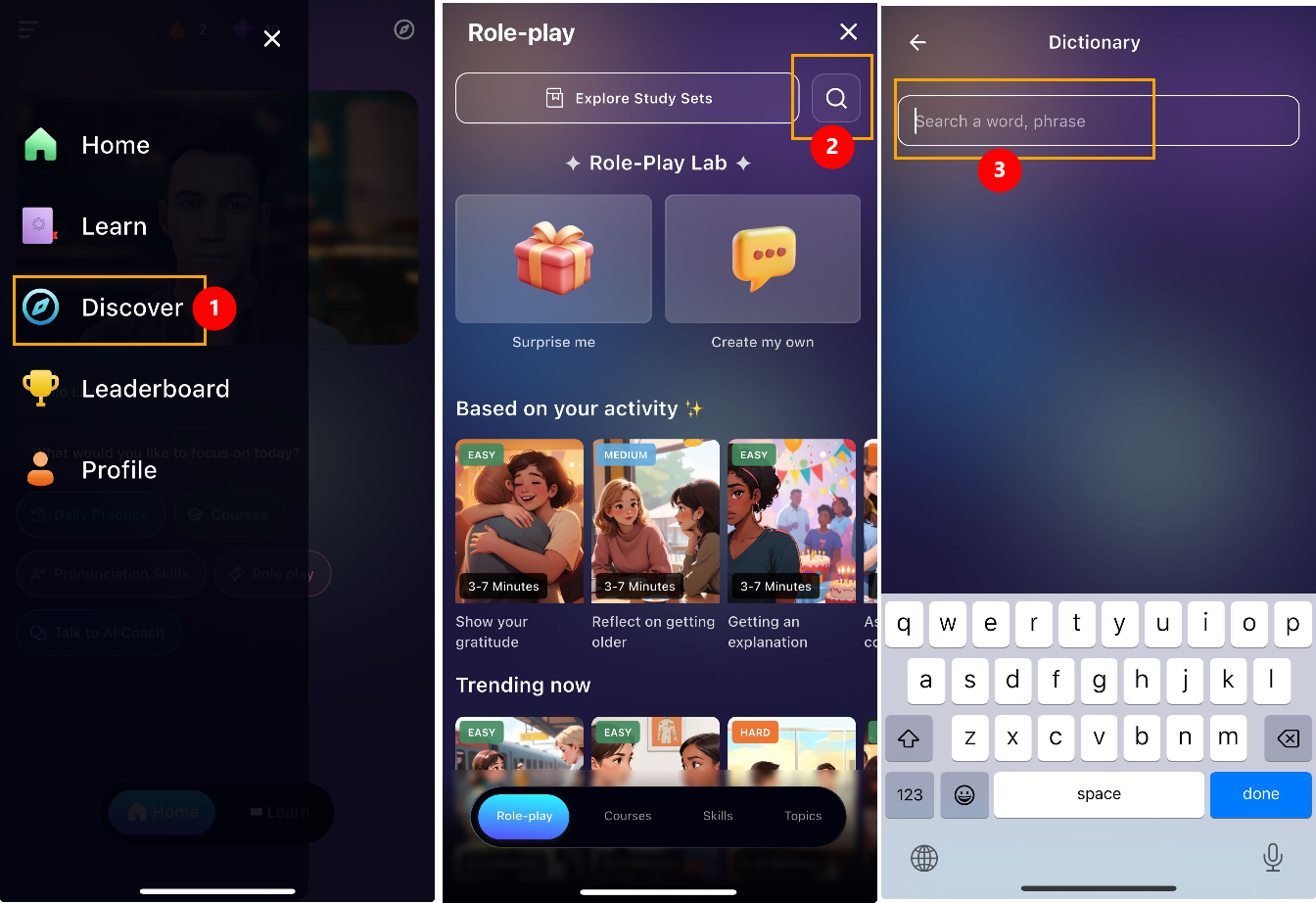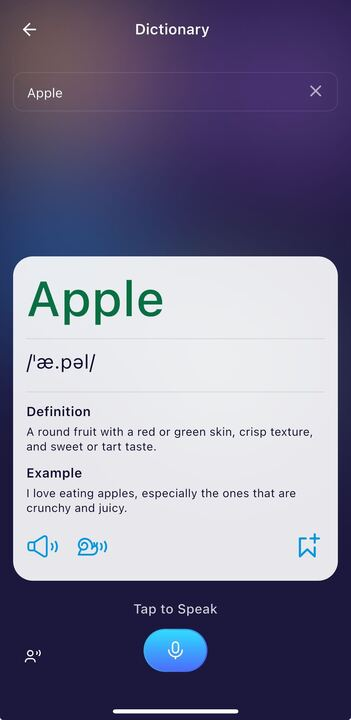 Need a quick definition or want to check the pronunciation of a new word? Use ELSA's built-in dictionary feature.