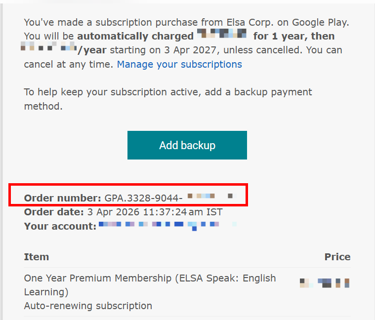 - Check your Email: Search your inbox for "ELSA Speak" or "PayPal" to find your payment confirmation.