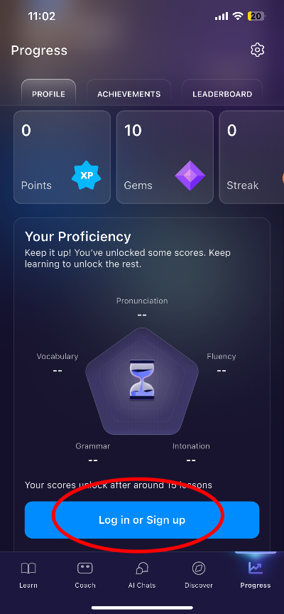 Navigate to Profile and click on the Sign Up button to register an email for this account.