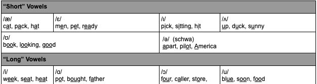 - 단모음 및 장모음